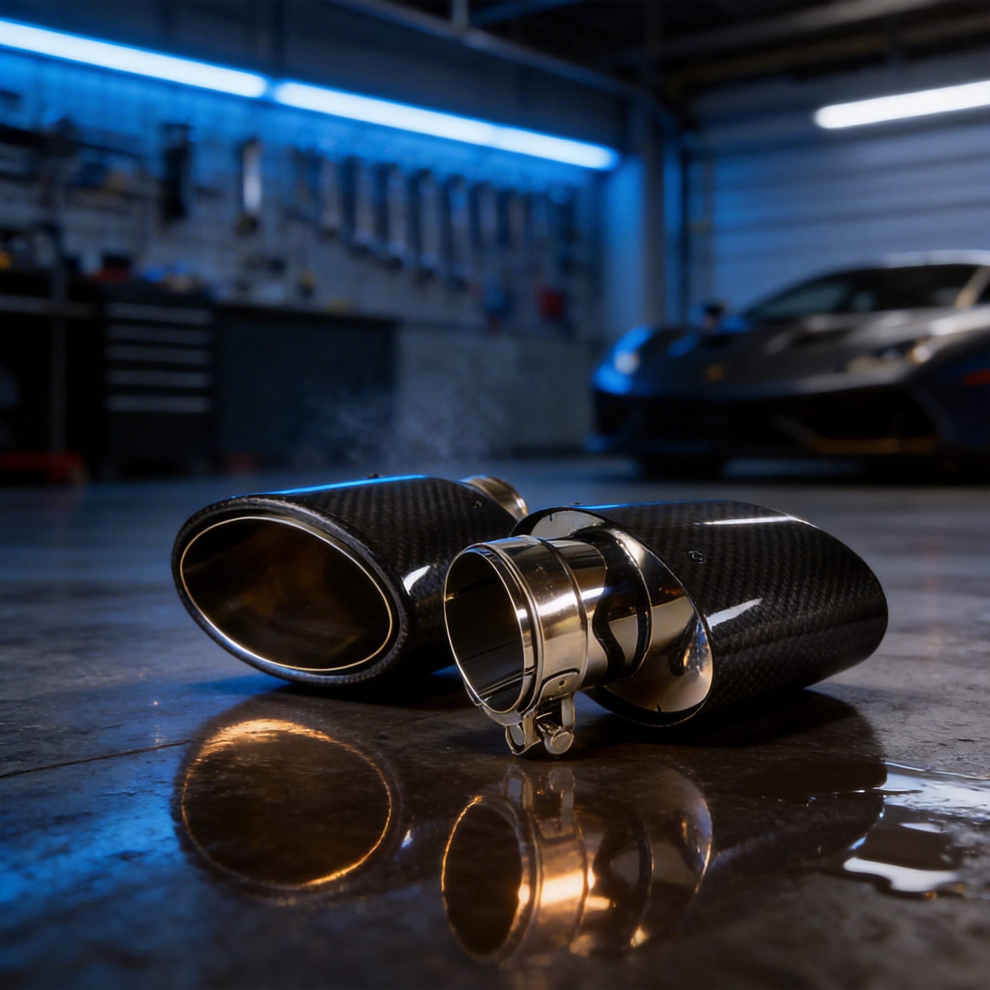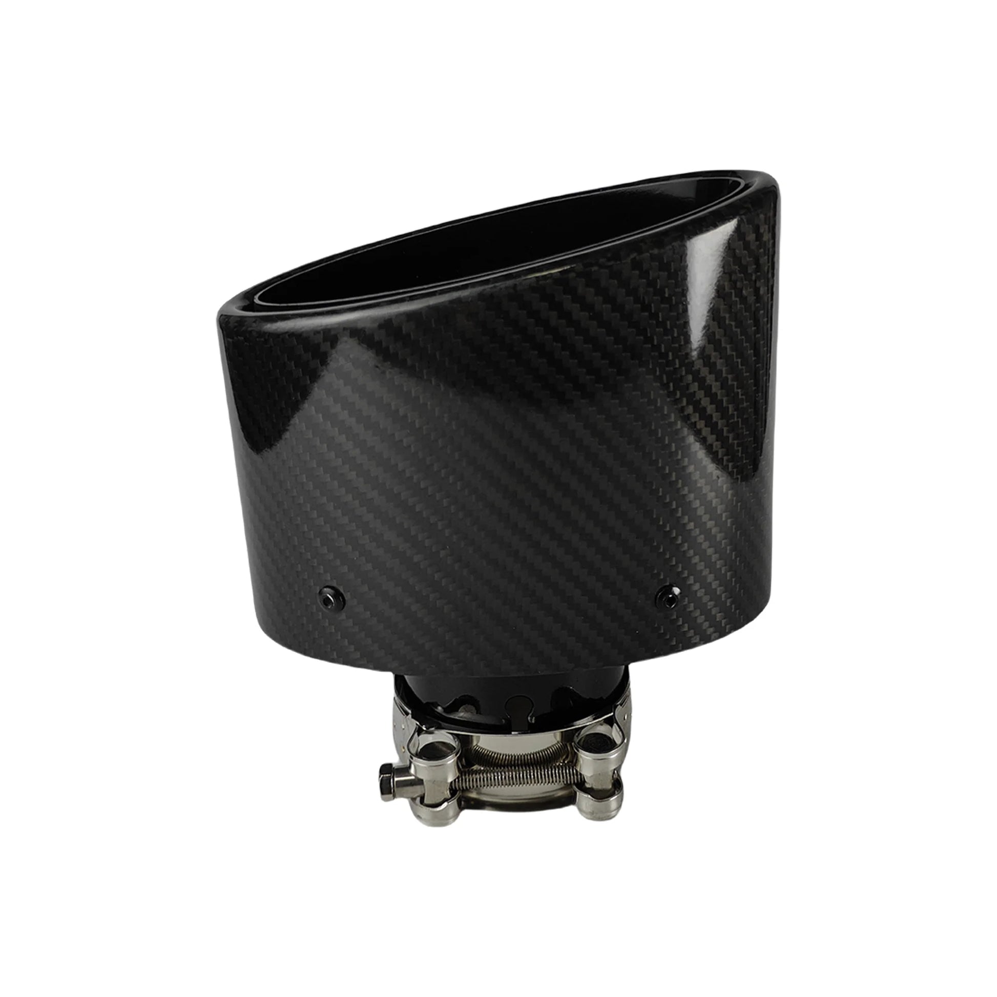 1 Uds Universal coche brillante fibra de carbono silenciador punta tubo de escape boquilla decoración inoxidable plata ovalada 150mm inclinación izquierda derecha